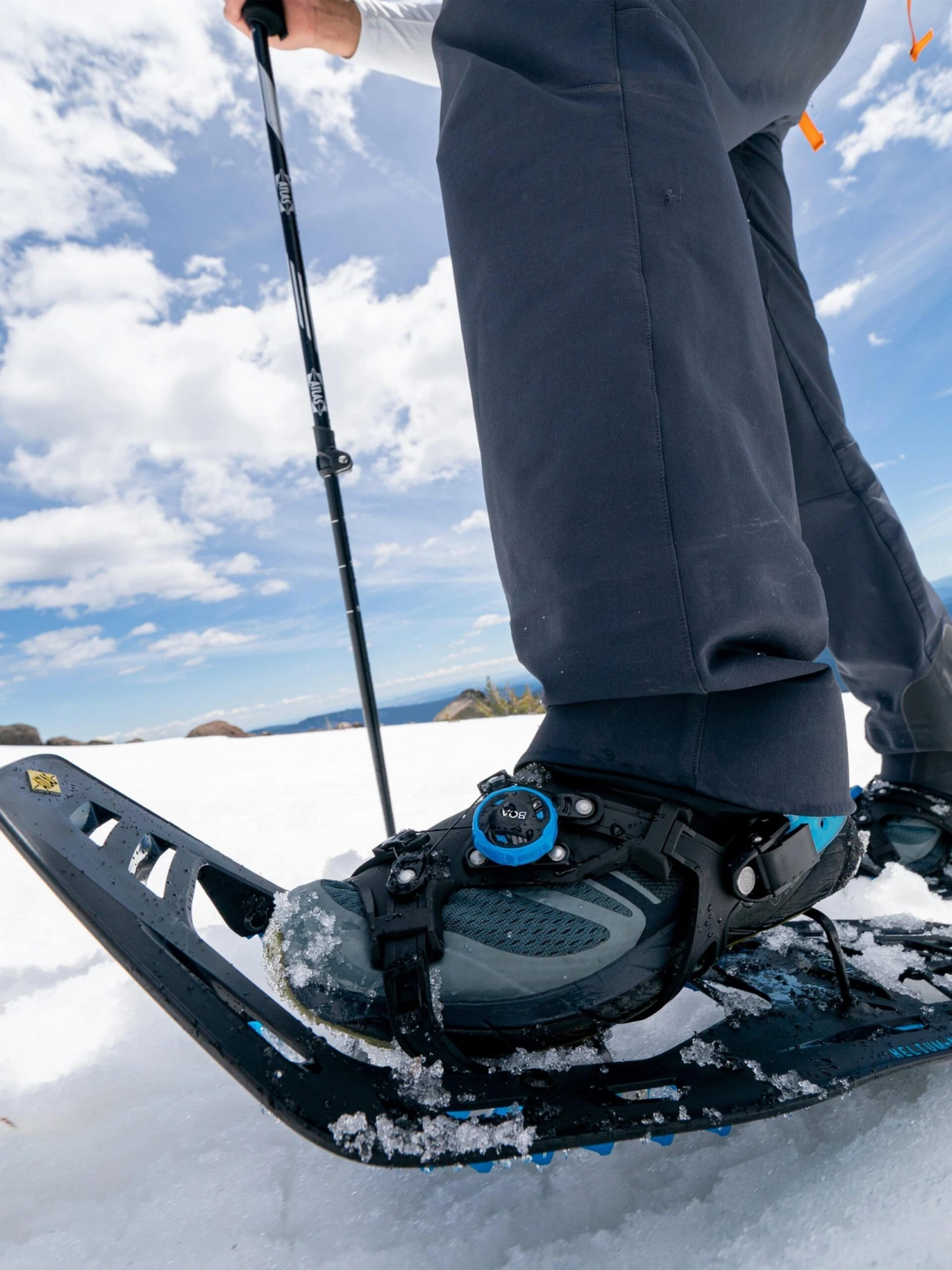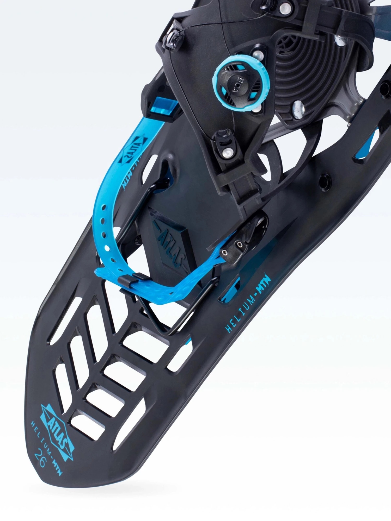 The next evolution in composite snowshoe technology has arrived. The Helium-MTN is an ultralight, uber versatile all-mountain snowshoe that brings the tech, but not the weight. It features the Wrapp MTN binding which integrates the BOA® Fit System to provide a fast, effortless, precision fit every time. The serrated teeth of the anodized aluminum traction rails provide excellent grip in varying terrain and snow conditions while the aggressive MTN crampon with an aft tang creates 360° engagement around the foot. The louvered design of the Helium deck sheds snow while an underside aft fin keeps the snowshoes tracking straight. Designed to excel in all types of terrain, the Helium-MTN offers maximum traction and comfort to take on any winter hiking challenge.