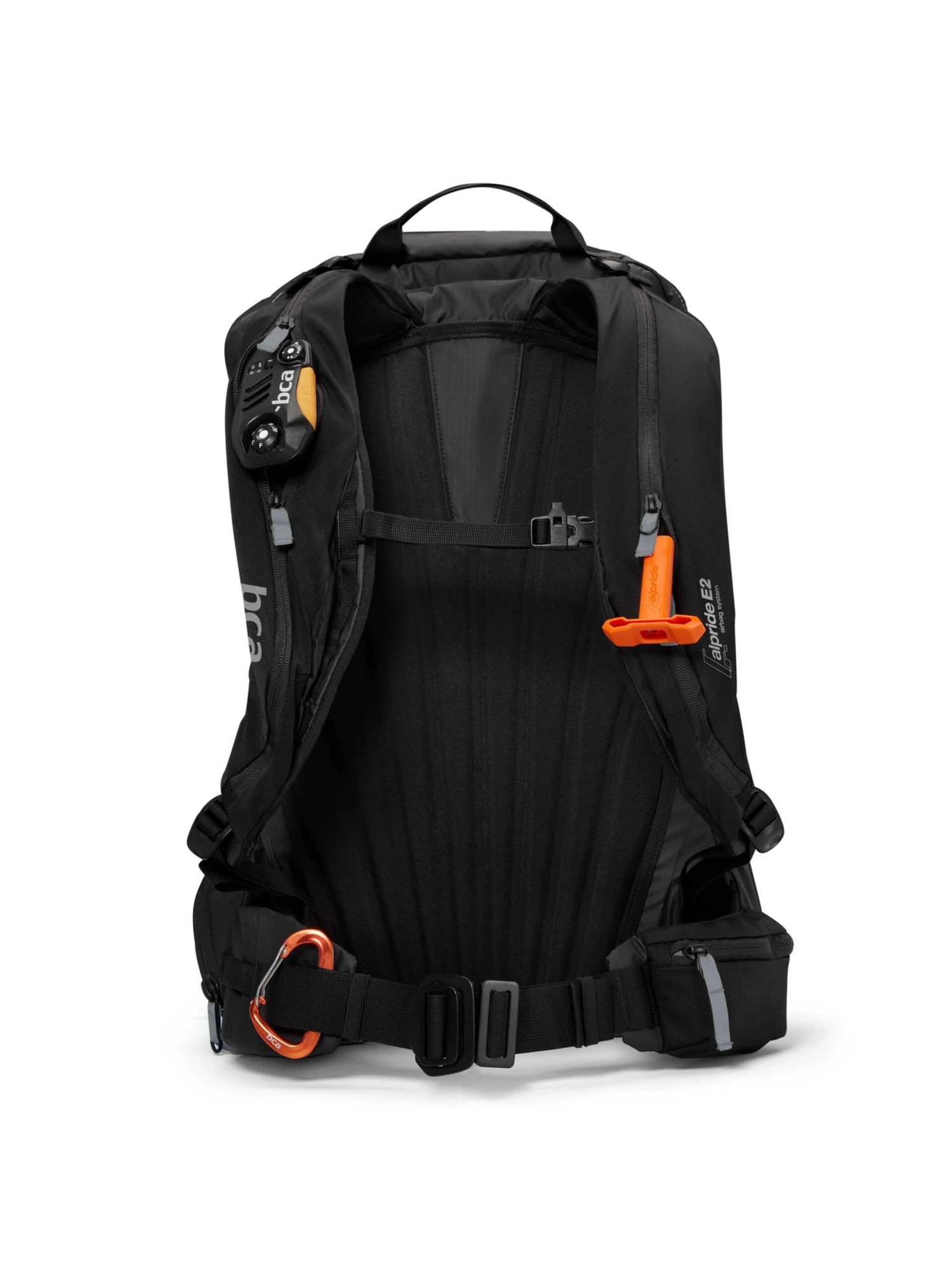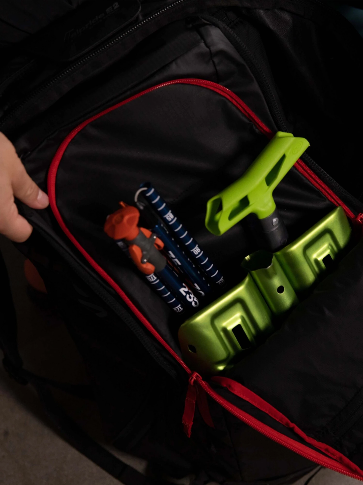 BCA’s new Float E2 avalanche airbag packs use an Alpride E2 supercapacitor system to store energy that powers the compressor upon deployment. Supercapacitor performance is more reliable in cold temperatures and releases faster when activated for deployment. The new E2 engine is 40 percent smaller and 25 percent lighter than the existing Alpride E1 system, with a 162-liter airbag. Like the E1, the E2 is TSA-approved for hassle-free airline travel. While the E2 system makes it easy to travel by air, our innovative Side Stash pocket and Back Stash zip make it easier to travel on snow —without stopping to hydrate, swap hat/gloves/eyewear, or even skins— just rip ‘em, stash ‘em and go!