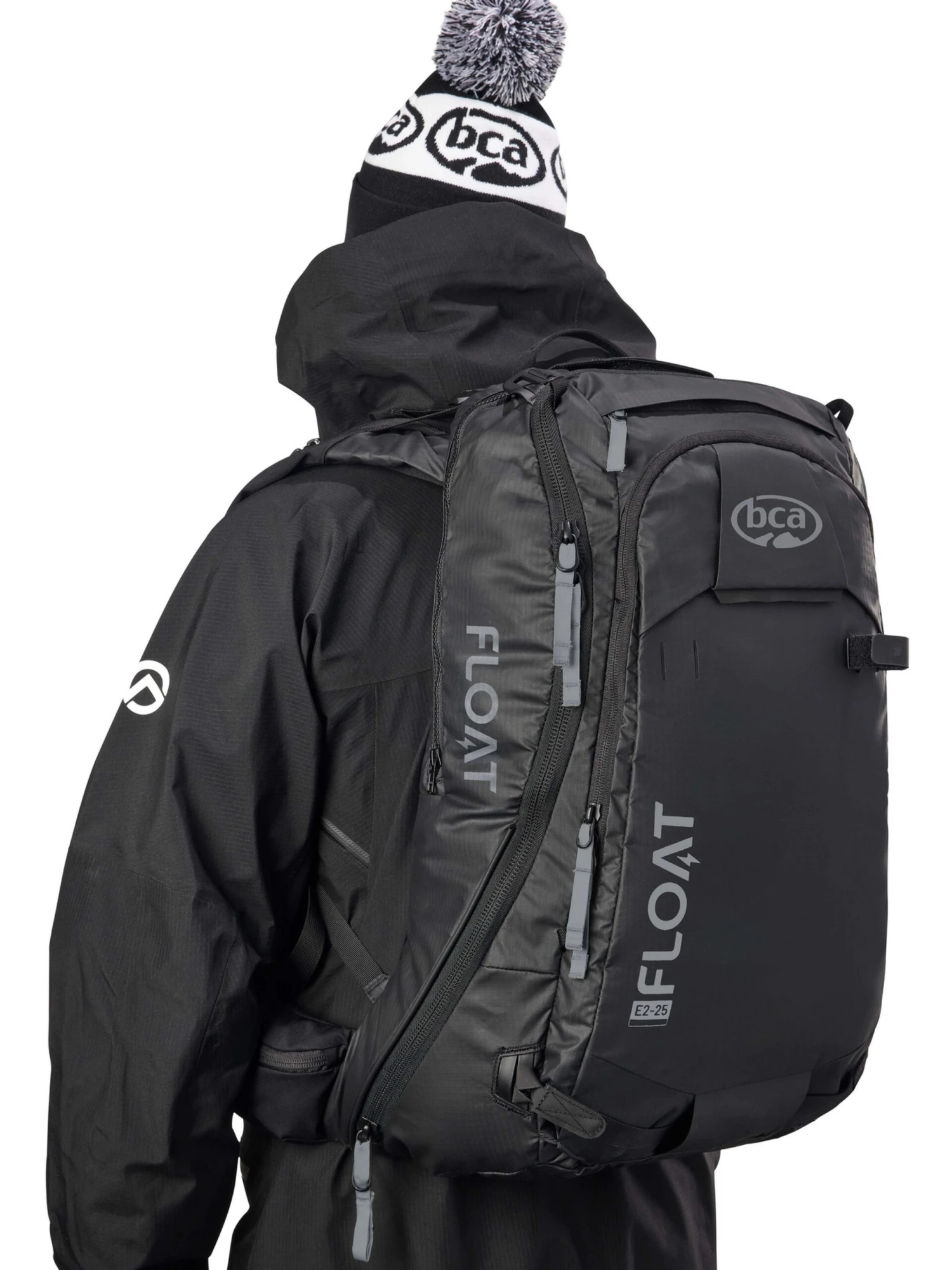 The Float E2-25 is our 25L slimmed-down airbag pack designed for all snowsports and features our waterproof coated nylon, Side Stash pocket, Back Stash zip, curved side access zip, removable ski/snowboard/compression straps, hip belt pocket, “cooling fin” back panel ventilation, and dedicated safety tools pocket.