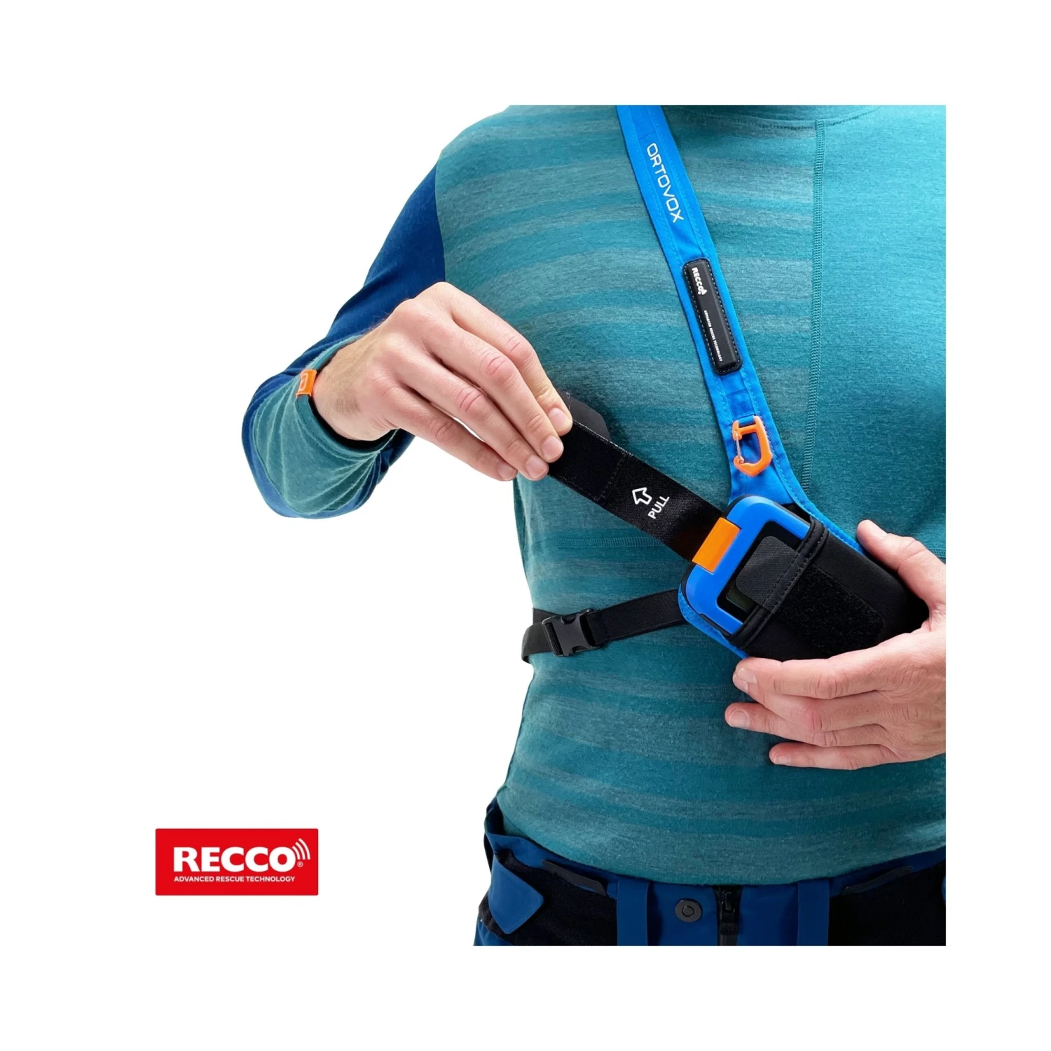This handy avalanche transceiver weighs in at just 210 grams, can be held securely when wearing gloves thanks to its rubberized grip zone, and fits easily into a hip pocket if it isn’t being worn in the quick-access carrying system which automatically pushes out the avalanche transceiver when unzipped. This way, the DIRACT is always quickly and safely to hand and instantly ready to use. As a backup, the RECCO reflector integrated in the carrying system further increases your chances of being found.